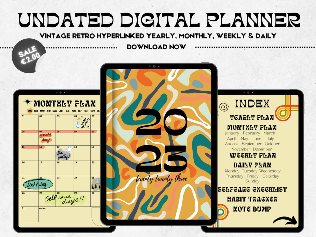A retro vintage undated portrait digital planner, perfect for any year !